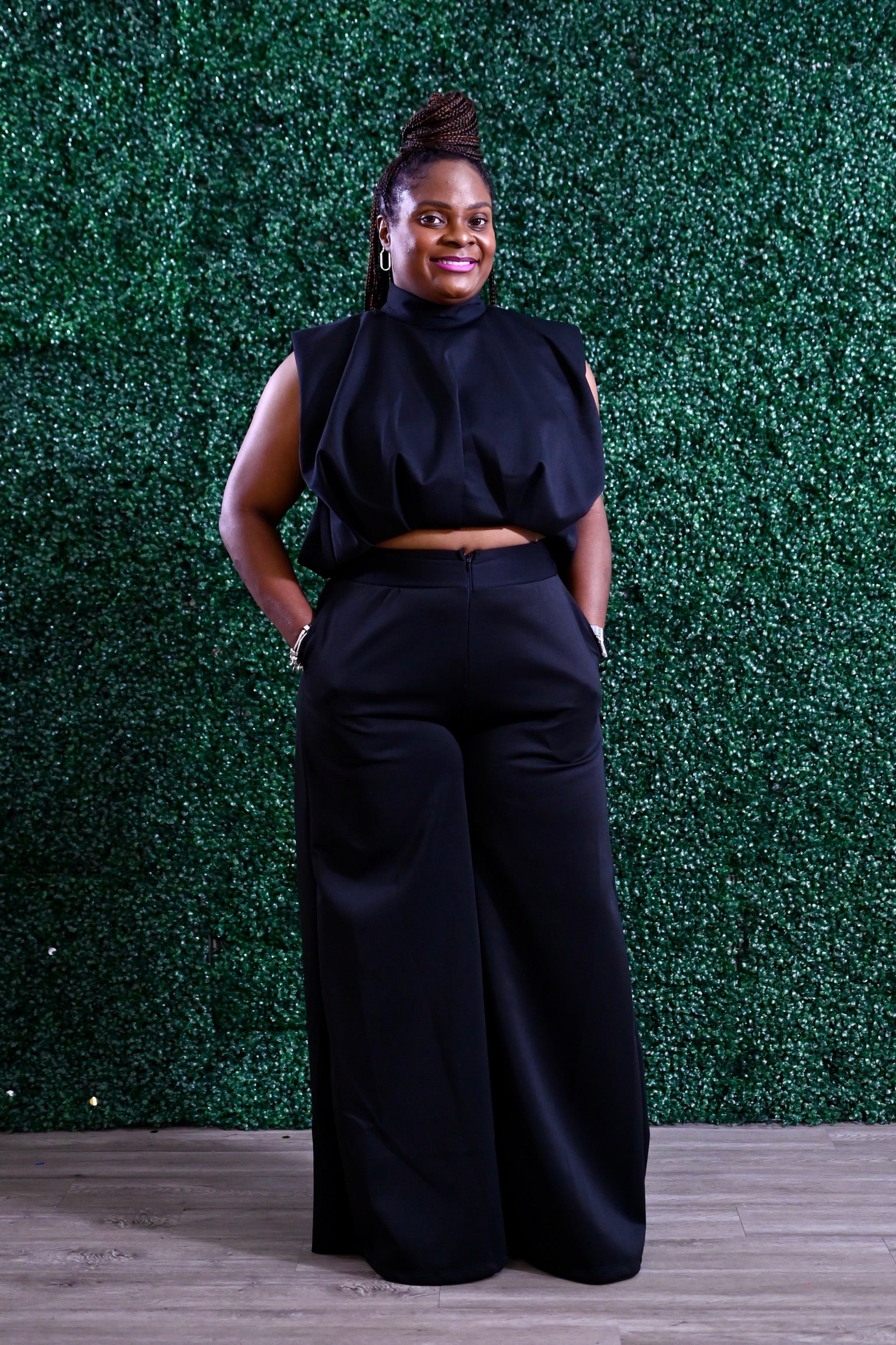 Treat yourself to something special with the Charlie 2pc Set, a timeless combination of balance and style made from a striking black fabric. Channel graceful elegance with the balloon crop top and wide leg pants, perfect for any sophisticated occasion. Let your fashion speak volumes with this elegant 2pc look.