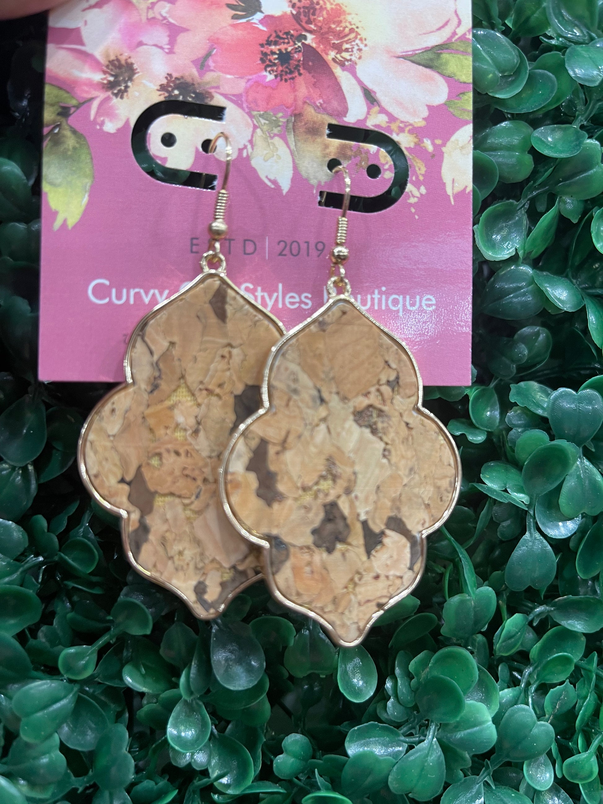 Hexagon drop earrings in leopard, abalone, snakeskin, mother of pearl, cork, woven.