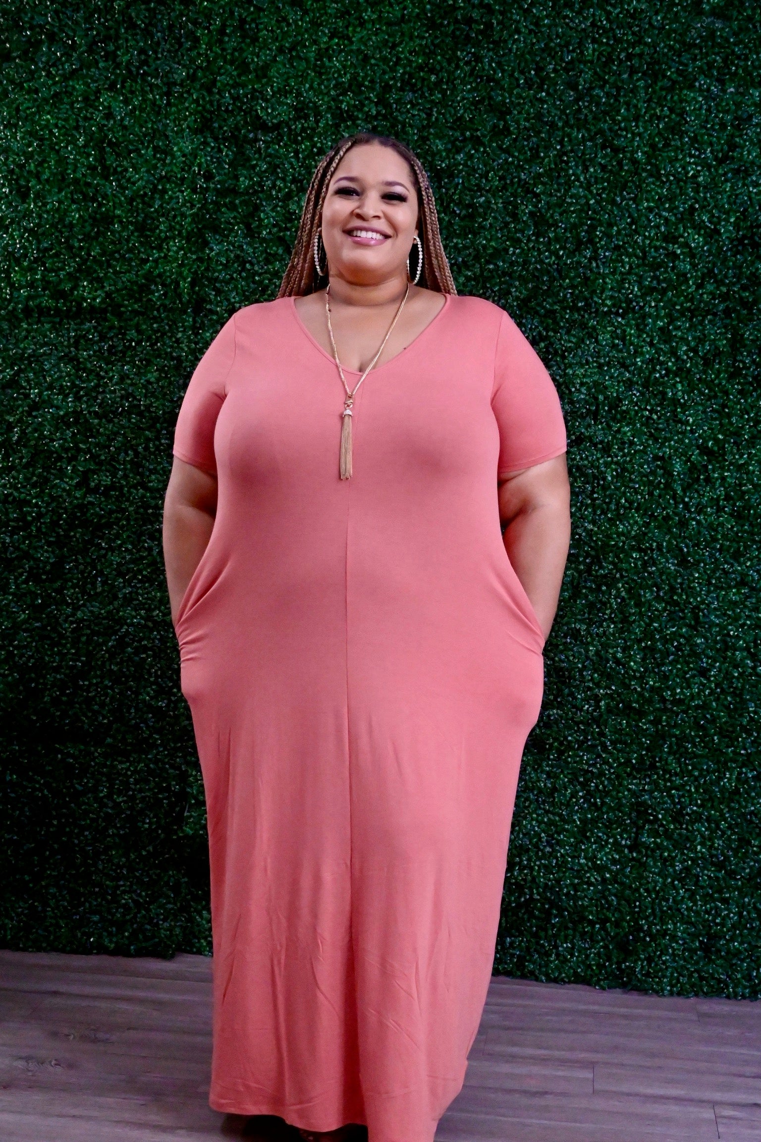 Treat your summer wardrobe to the Juniper Maxi Dress, featuring a stylish V-neck and pockets that you'll be thankful for! Short sleeves make it ideal for those warmer days. And with a sassier side than your average maxi dress, you'll be turning heads wherever you go!