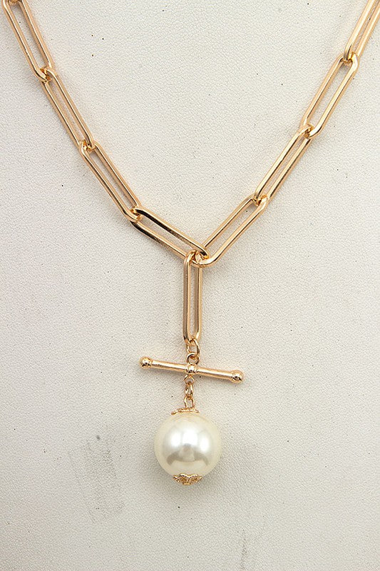 Chain link necklace with large pearl Accent.
