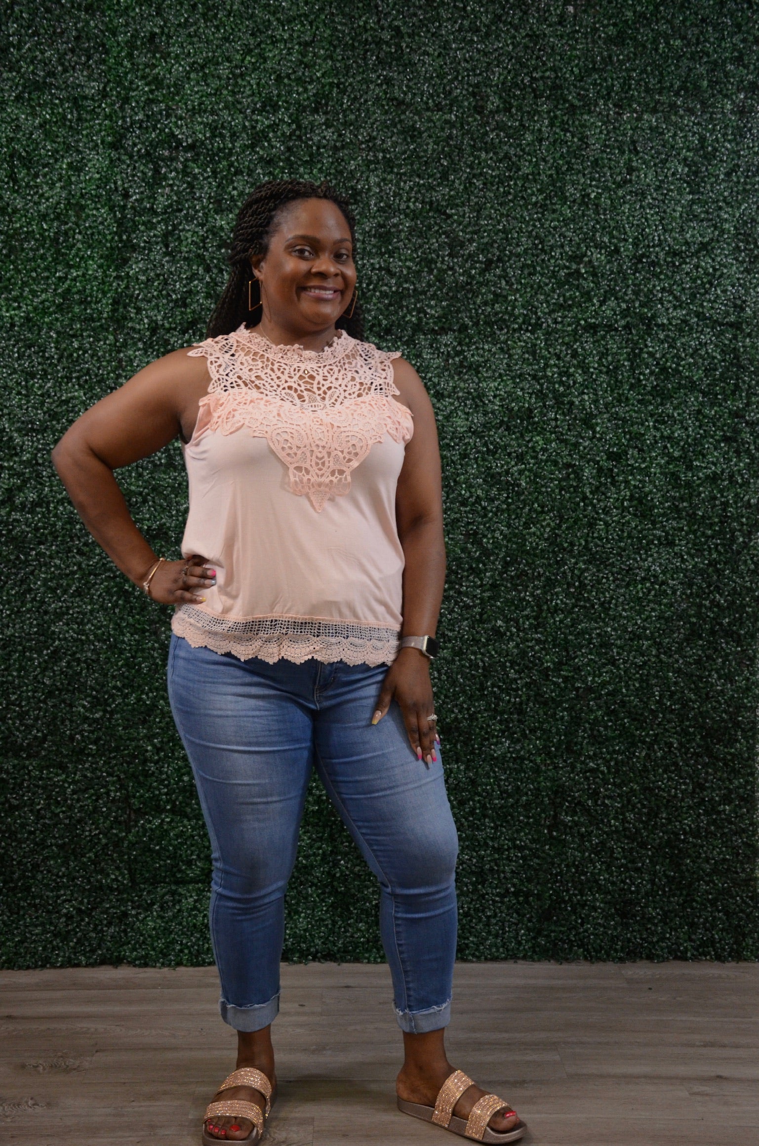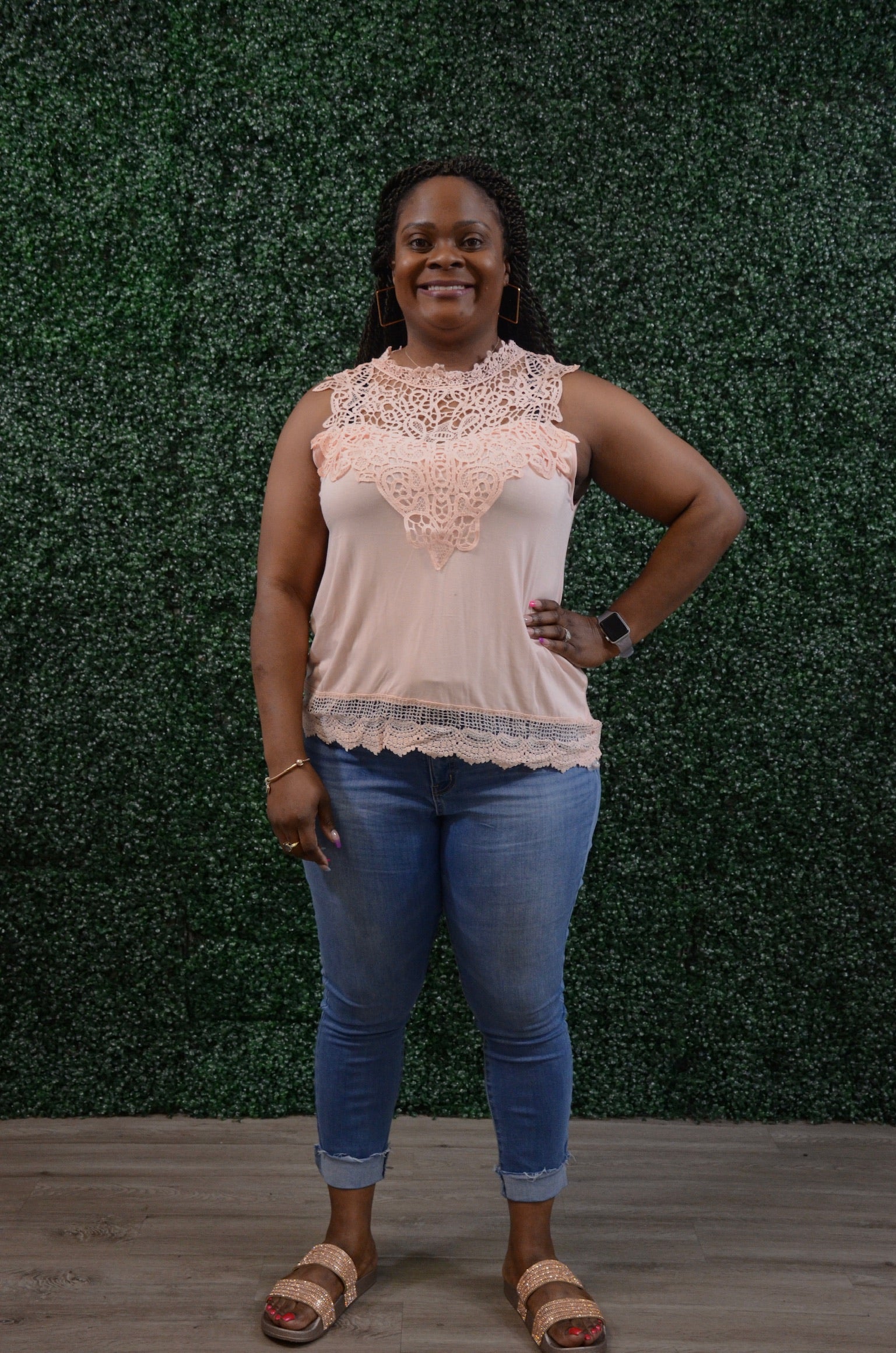 SLEEVELESS LACE CONTRAST SOLID TOP