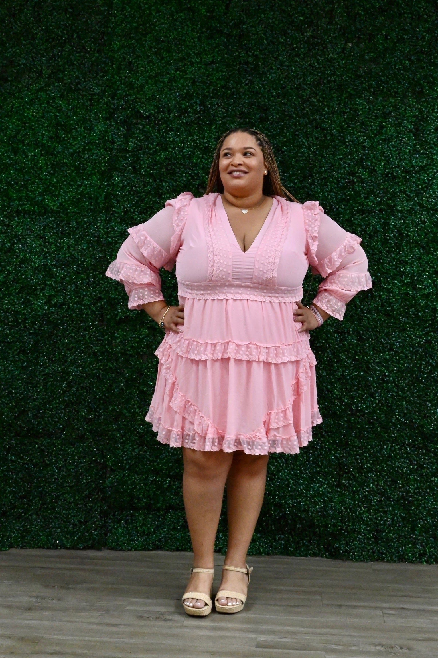 Be embraced in elegance with the Ryleigh Mini Dress; this exquisite piece features a tasteful long sleeve v neck silhouette and a gracefully corseted lace up back, creating a look that is as timelessly classic as it is sophisticatedly modern. A delicate pink hue brings a touch of warmth and joy to its luxurious fabric, creating an enchanting ensemble perfect for any special occasion.